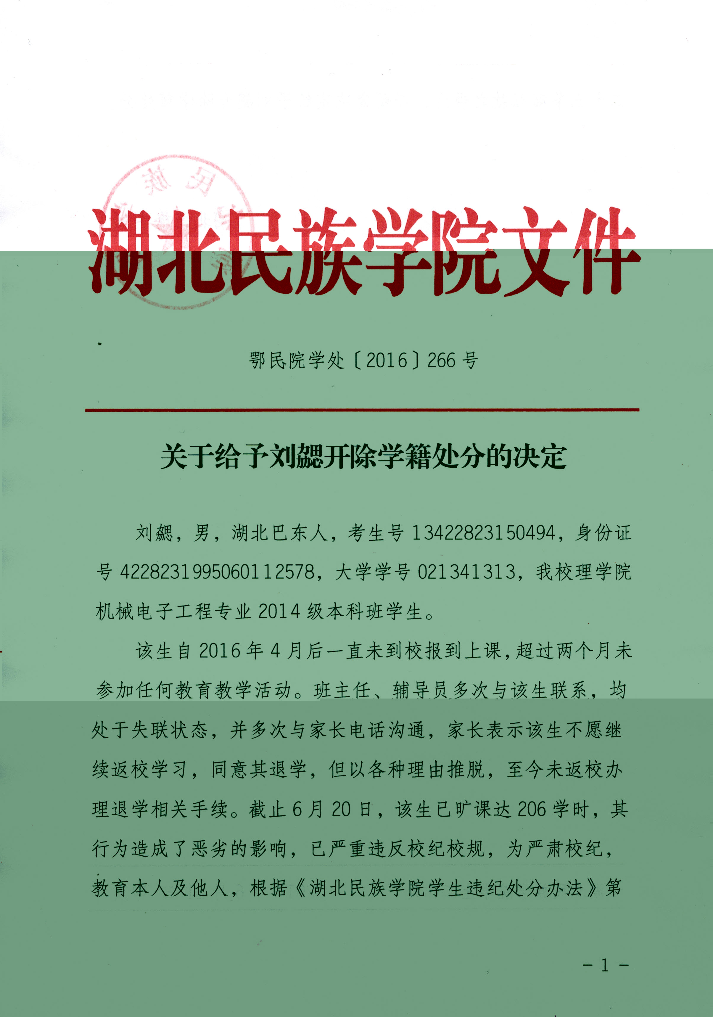 关于给予刘勰开除学籍处分的决定1.jpg