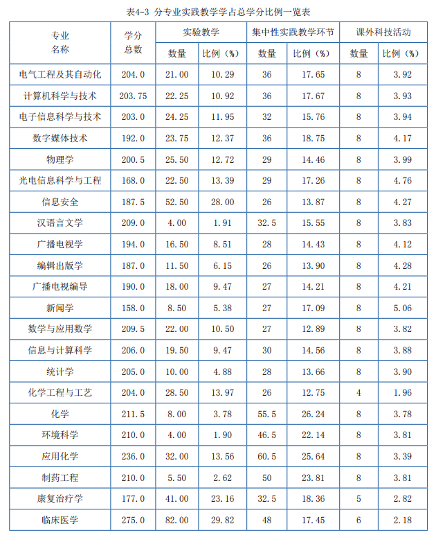 3全校开设课程总门数、实践教学学分占总学分比例、选修课学分占总学分比例