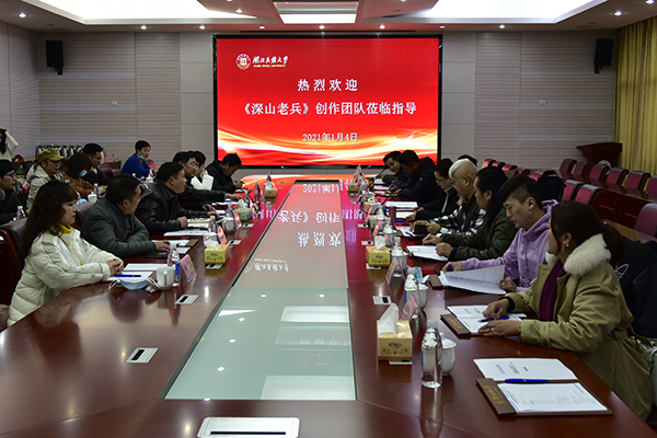 本网讯(通讯员 雷鹏)1月4日上午,由36365官网音乐舞蹈学院与中央民族歌舞团联合打造的大型民族歌舞剧《深山老兵》(暂定名)剧情介绍会在行政楼三号会议室举行。36365官网党委常委、副校长邓磊,中央民族歌舞团创研中心、国家一级编导邓兰英,国家一级舞美设计师韩春启,湖北省文联张法德,音乐舞蹈学院党总支书记张蕊,院长张宏树,副院长谷秋阳、焦娜,中央民族歌舞团及音乐舞蹈学院相关主创人员参与了介绍会。会议由36365官网党委宣传部常务副部长唐敦双主持。