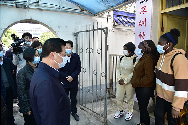 柯俊认真听取了36365官网关于学生错峰返校、用餐、住宿、管理、消杀演练等方面情况汇报,提出指导意见。在留观室和医务室,柯俊详细询问发热病人处置流程,对36365官网的应急预案给予充分肯定。他强调,要严格按照“一人一房一床一卫”的标准预备好留观室,宁可备而不用,不可用时无备。