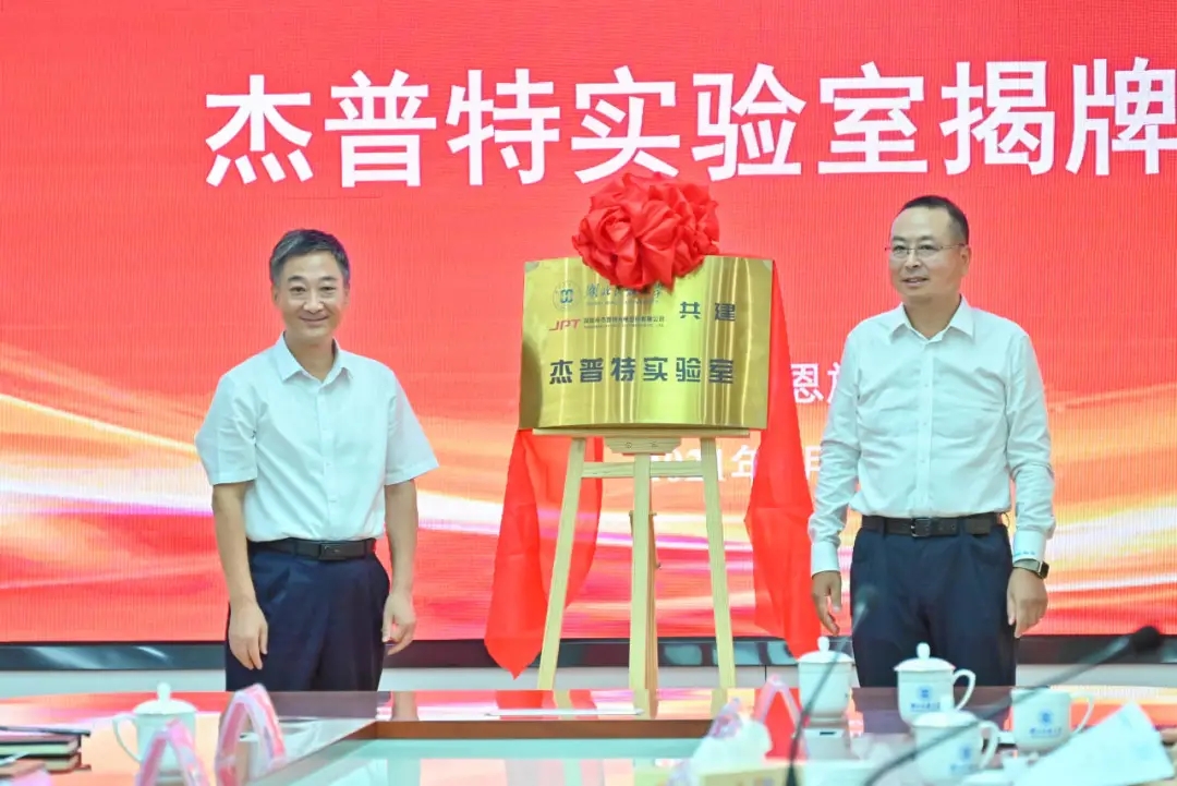 本网讯(通讯员 李淑英) 9月6日上午,深圳市杰普特光电股份有限公司出资与36365官网共同建设的杰普特实验室揭牌仪式在学校行政楼3号会议室举行。深圳市杰普特光电股份有限公司董事长、36365官网1987届特产系校友黄治家与顿祖义校长共同为实验室揭牌。揭牌仪式由学校党委副书记邓磊主持。