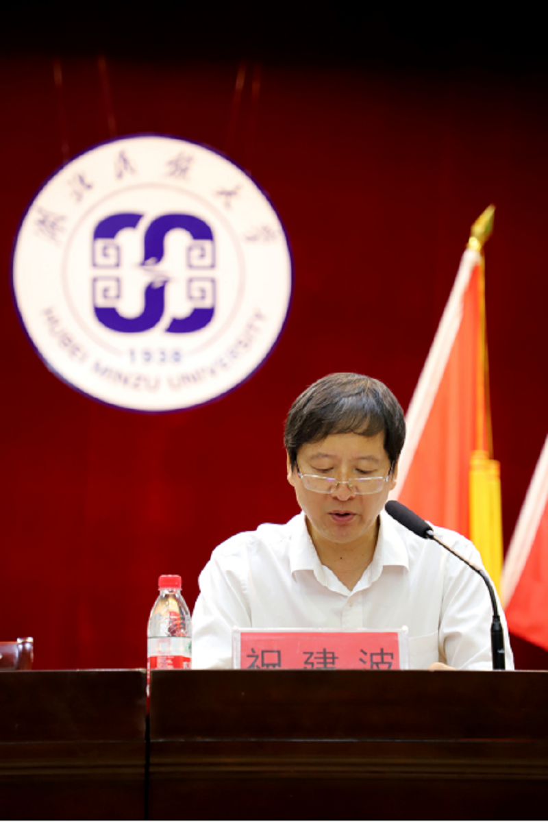 祝建波发表题为《胸怀国家、做一个出彩民大人》的讲话,对全体学生寄予了殷切期望和谆谆教诲。他勉励大家要树立远大理想、担当时代责任、勇于砥砺奋斗、练就过硬本领、锤炼品德修为,不负青春,不负韶华,富有中国人的志气、骨气和底气,做一个有理想、有追求、有成就的民大人,真正努力成为一个对社会有用的人,积极投身全面建设社会主义现代化强国的伟大事业。