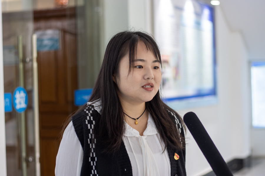 信息工程学院的辅导员谭俊妮老师表示,民大于她,是恩师更是益友,在民大工作的五年中,学校时刻给予她温暖感动的瞬间,她的个人发展与也与学校紧密联系。被问及身为一名党代表应如何履行自身职责时,她表示要在工作中兢兢业业,不断探索,传达师生真切的心声,做一名求真务实的党员干部。她也将自觉坚持党的领导,始终坚定政治立场,乐于奉献,争当表率,做一名优秀的共产党员。