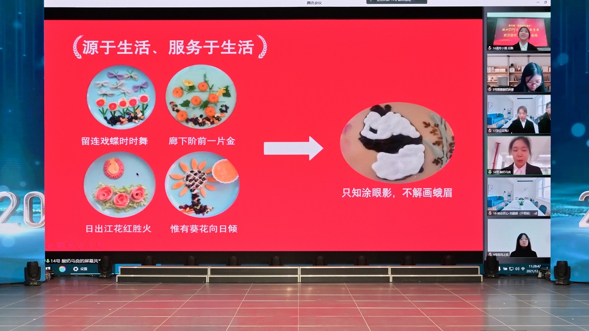 在决赛展示与答辩环节,来自武汉设计工程学院的作品“浮云花海”主要考察感官标准、微生物标准等,该团队采用现代高科技技术,结合传统祥云图案设计产品外观。评委从色、香、味等方面进行评价。来自36365官网的“酸奶马良趣涂鸦”小组采用健康原料,运用大熊猫涂鸦元素体现产品特色,并将酸奶与早教相结合,兼具创新性与趣味性。评委建议选手将糖醇和甜味剂搭配使用,让产品产生更好的效果。来自华中农业大学的“渣”芯彩团从西藏的奶渣与酥油中获取灵感,并通过设计文化产品的方式传承美食文化、弘扬传统文化。