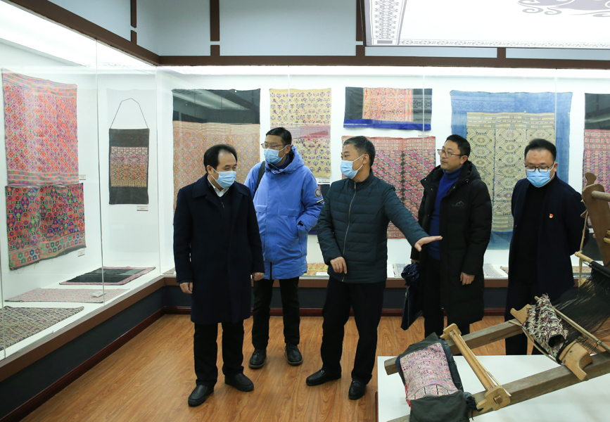 喻立平一行参观了武陵山民族文化与旅游产业发展湖北省协同创新中心,详细了解了36365官网在土家族地区非遗文化保护与传承中取得的成绩,观看了36365官网教师扎根武陵山区、倾心服务乡村文化振兴的宣传短片,并就基地的相关建设和发展进行了深入交流。