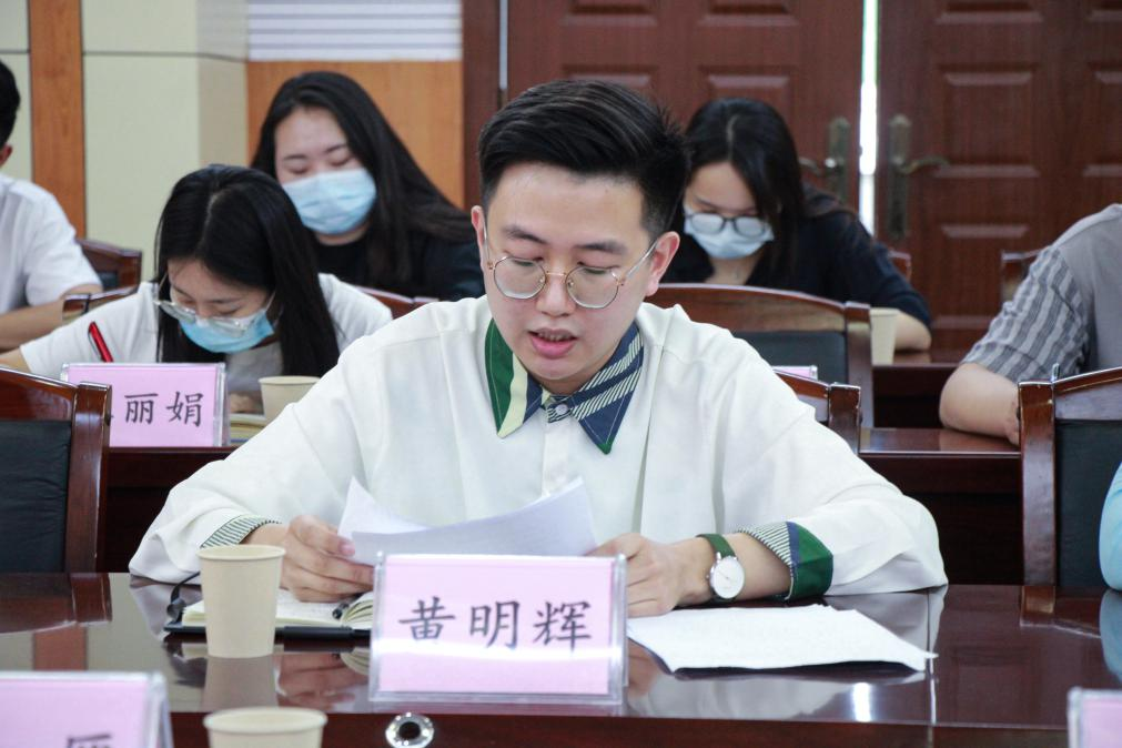 马克思主义学院2021级研究生黄明辉发言中表示,作为新时代的青年,我们要把握历史主动、勇于攀进峥嵘,要志存高远、明德向善,助力时代添彩。