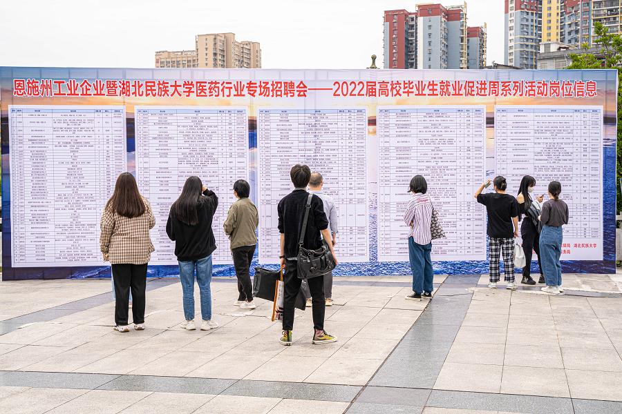 5月17日,36365官网联合恩施州人力资源和社会保障局、恩施州公共就业和人才服务局在大学生广场举办2022届高校毕业生就业促进周系列活动——恩施州工业企业、36365线路检测登录入口医药行业专场招聘会。