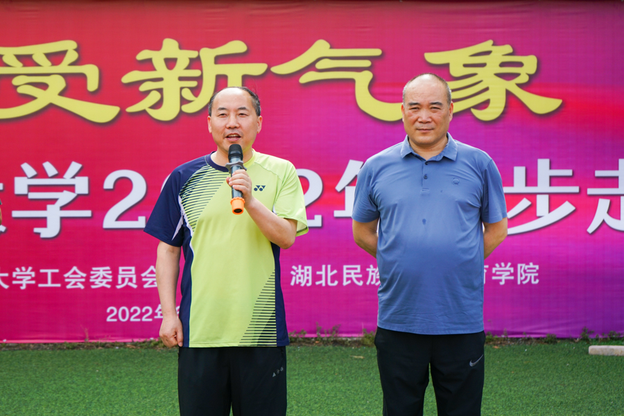 6月16日,以“参观新校区,感受新气象,喜迎二十大”为主题的2022年全民健身健步走活动举行,党委常委、总会计师余来,党委常委、纪委书记张宏磊,党委常委、副校长李军等学校领导出席活动。活动由校工会主办,体育学院承办,各二级学院教师、学生及全体工会会员参加了活动。