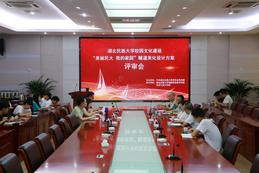 6月22日,“美丽民大,我的家园”隧道美化设计方案评审会举行。恩施州美术家协会主席向极鼎,恩施学院建筑设计学院副院长杜鹃,美术与设计学院院长石庆秘,美设学院副教授邓傈文、郑远景,创新创业教育学院综合办公室主任胡雪、党委宣传部精神文明建设科胡鑫担任评委。石庆秘担任评审会学术主持。