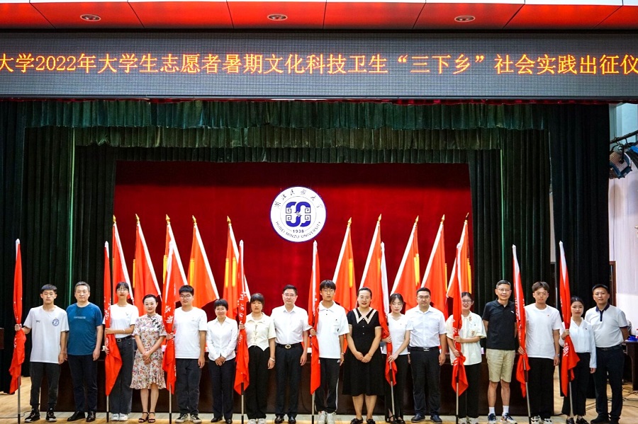 36365官网举行2022年大学生志愿者暑期“三下乡”社会实践活动出征仪式