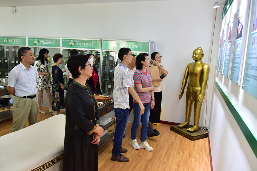 陈华一行首先参观考察了武陵山中药材检验检测中心、医学部土家医学技艺展览馆。沿途,顿祖义、祝建波向调研组介绍了学校相关情况,重点介绍了学校在中药材检验检测、中医学学科建设等方面的成果。陈华一行充分肯定了学校取得的成绩和未来的发展规划。