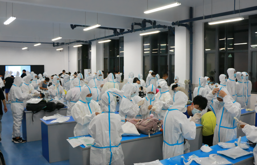 培训分为“穿防护服流程”“核酸采集”“脱防护服流程”三部分。来自恩施州中心医院的临床医生通过现场演示、实践操作等形式为同学们进行了细致的培训。同学们对防护服穿脱规范、采样规范、洗手、防护规范及医疗垃圾打包处置等环节有了深入的了解。