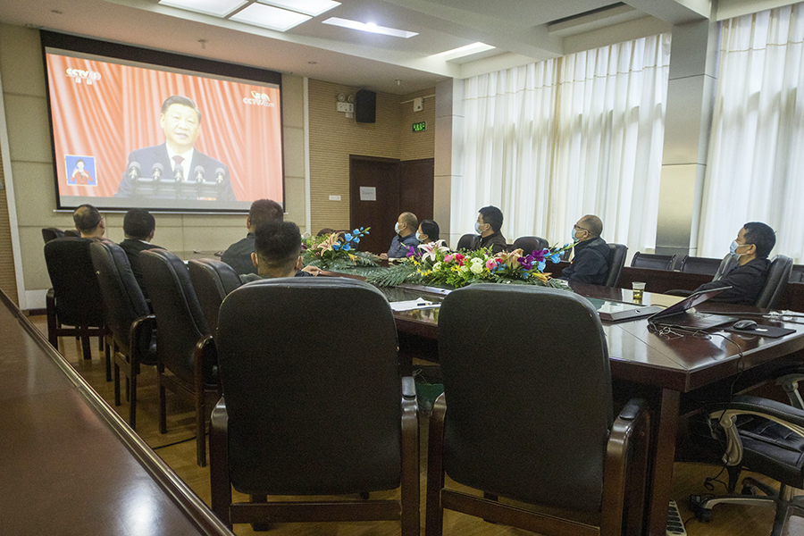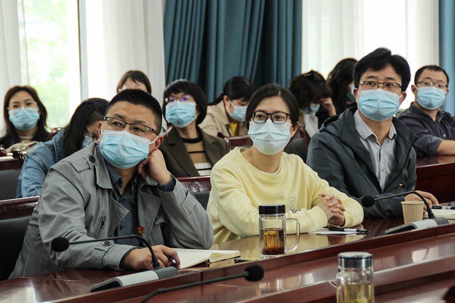 化学与环境工程学院教师党员干部集中观看。(汤藤静 摄)