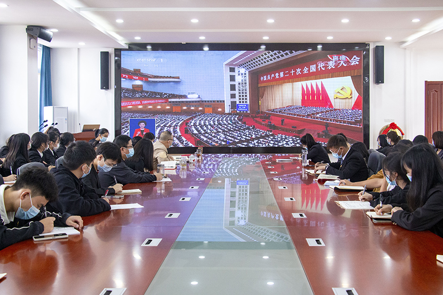 踔厉奋发新时代,勇毅前行新征程!10月16日上午,举世瞩目的中国共产党第二十次全国代表大会在人民大会堂隆重开幕,校属各单位通过各种形式组织广大师生收听收看党的二十大开幕会盛况。桂花园里,师生们按照疫情防控的规范,在各会议室、各教学楼内,有序集中收看党的二十大开幕会盛况,认真聆听、学习、热议习近平总书记的报告。