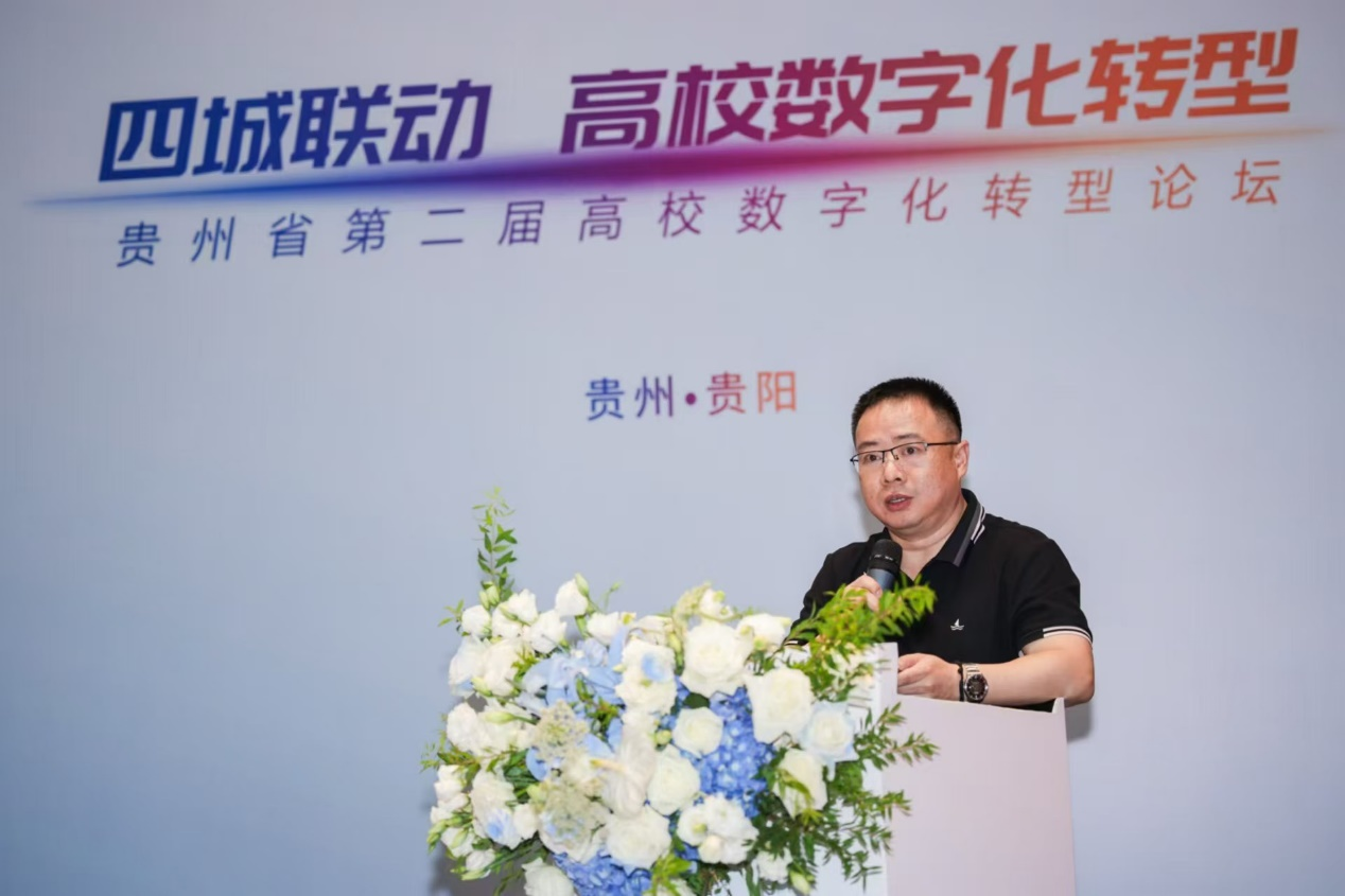 5月25日,贵州省第二届高校数字化转型论坛在贵阳万丽酒店顺利举行,36365官网受邀参加论坛。此次论坛由贵安新区管理委员会指导,贵州省计算机学会主办,并得到多方单位的大力支持。论坛聚焦教育数字化转型,旨在推进产业、教育、科技、人才的“四位一体”协同融合发展,为高等教育内涵式高质量发展注入新动力。贵阳市大数据局副局长徐先文出席会议,高校数字校园相关领域专家、管理部门领导、数字校园相关企业负责人及高级顾问参加会议。