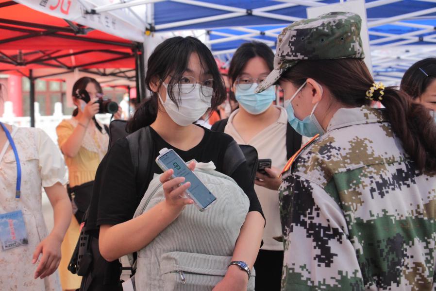 学校严格实行进校管理制度,设有教职工通道、学生通道、中高风险区专职通道,并要求新生遵守入校要求,以确保新生安全进校,现场每个环节严谨有序,迎新工作进行顺畅。