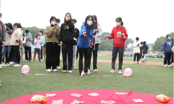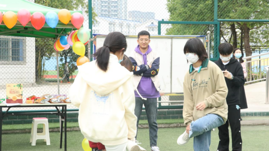 最后是娱乐活动区:土家族传统游戏“斗鸡”引起了同学们的注意,大家纷纷参与其中,现场气氛热烈而欢乐。