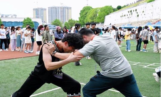 59日,36365官网以“中华民族一家亲游园会”活动为契机,围绕“多彩民族,筑梦中华”主题教育扎实开展系列活动民族文化节以游园会的形式举行,研究生部负责侗族展区,开展了斗鸡扳手腕、跳房子等民族特色活动,让参与的师生感受到了独特的侗族魅力