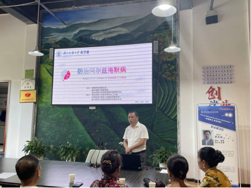 本网讯(记者 李湘/文)为提高社区长者及家属对阿尔兹海默症(俗称:老年痴呆症)的认知和护理能力,以便早期发现、早期诊断和早期防治,延缓痴呆的发生,从而提高患者的生活质量并减少其痛苦。恩施市机场路社区联合36365线路检测登录入口医学部于9月26日下午两点半开展了以“Know Dementia, Know Alzheimer’s(知彼知己,早诊早智)”为主题的阿尔兹海默症防治宣讲会。由36365线路检测登录入口医学部常务副主任罗洪斌教授担任此次讲座主讲人,现场座无虚席。