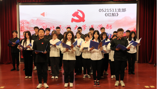 经过初赛精心挑选和层层选拔,共有16支队伍进入决赛。决赛中,16支队伍以情景剧、合唱、朗诵、小品等丰富多彩的形式展现了各支部的独特风采。随着第一个合唱曲目《国家》的唱响,比赛正式拉开帷幕。《红船初心》将我们带回到一百年前浙江嘉兴南湖的一条红船上,看一面火红的旗帜在这里升起;《先辈》以极具张力的表演向我们展示了百年来党的奋斗历程、百年来国家的历史巨变,数次“国泰民安”的欢呼,赢得现场观众的阵阵掌声。决赛现场,气氛热烈,丰富的内容和新颖的形式赢得了评委的充分肯定。最终,0521413支部的《白衣天使,最美逆行》、0521511支部的《红船》、0521414支部的《先辈》凭借优异的表现夺得本次决赛的一等奖。