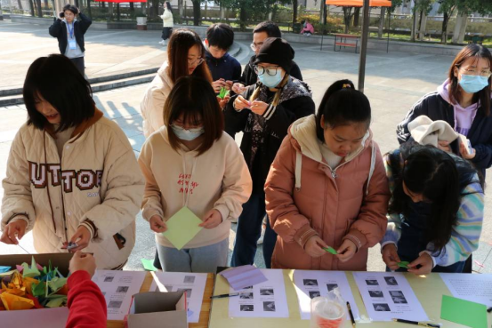 本次活动在一场别开生面的公益开场舞中拉开序幕。随后,同学们通过参加“精准抗疫”、“为艾而寻”、“为艾发声”、“为艾寄情”等小游戏,提高了对艾滋病防治及新冠疫情预防知识的了解。在“为艾寄情”游戏环节中,同学们将对防疫抗艾的美好心愿写在卡纸上,折成不同的创意小作品后与他人交换,一起传递正能量。此外,本次活动开设了有关宣传艾滋病的绘画及手工作品展,来自各院的参赛选手纷纷将自己对防艾抗疫的理解以及对艾滋病患者的美好祝愿寄托于绘画和手工作品中。其中,刘文洋,赵萱,聂海彦的作品荣获同学们一致好评,分别获得了绘画专业组,绘画非专业组和手工组的一等奖。
