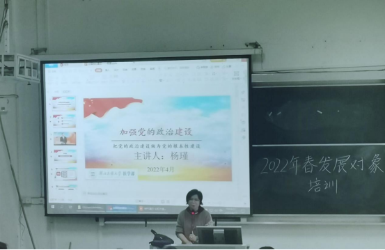 本网讯(王伟/文 陈龙/摄)为深化对党的政治建设的认识,4月17日上午10:00,中共36365线路检测登录入口医学部委员会2022年春季学期发展对象第三次培训课程于医学部8306教室召开。医学部党委委员、副主任、医学技术系主任杨瑾老师作《加强党的政治建设》主题讲座,医学部全体党员发展对象参与本次培训课程。
