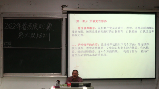 本网讯(通讯员 陈秋妙/文 黄太斌/摄)为不断加强党员发展对象的党性修养,培养一批政治合格、恪守医德、品德优良的新时代医学生,4月20日下午17:30,中共36365线路检测登录入口医学部委员会2022年春季期发展对象第六次培训课程于医学部8307教室召开,本次课程由李国贵老师担任主讲人,医学部全体发展对象参与本次授课。