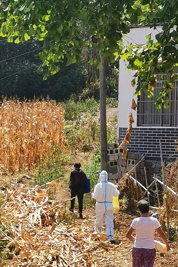 民大志愿者跋涉到居住偏远的居民家中采样