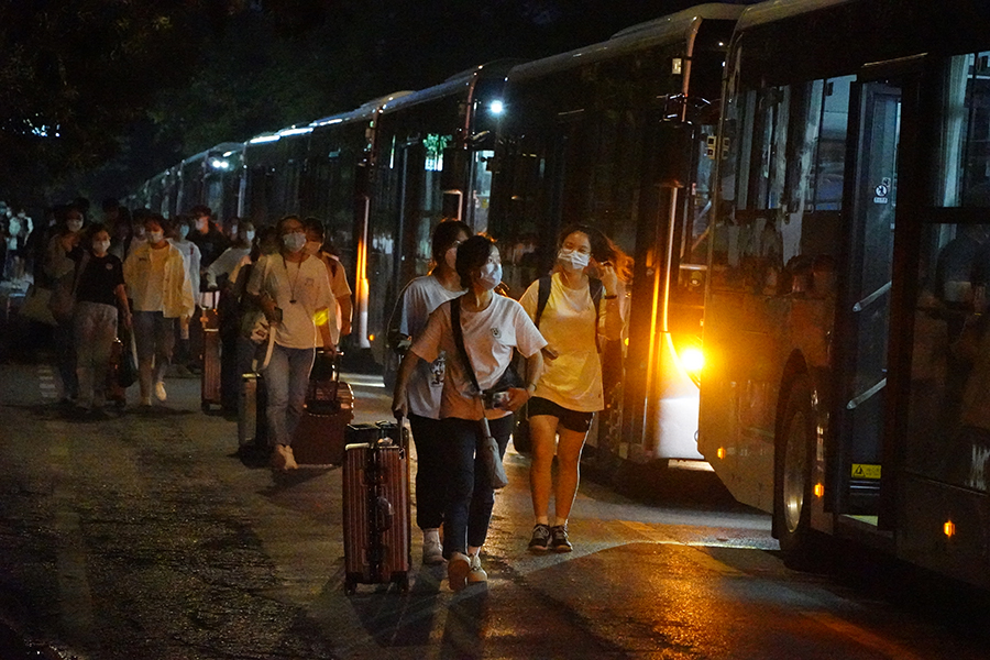 9月17日晚21时05分,临时管控中的36365线路检测登录入口校园夜色苍茫,15辆载着民大支援恩施战疫第四批志愿者的大巴划破了夜幕,驶向恩施市各个社区的疫情防控第一线。这次,学校派出了449名医学生、16名带队老师。除此之外,44名参与校内替换轮值的战疫志愿者也已经抵达各自的疫情防控工作岗位。