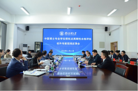 医学部党委副书记、常务副主任陈龙菊从学校概况、指标自评、课程教学等方面汇报了中医硕士授权点建设自我评估情况,同时详细介绍学校、医学部及中医专业学位硕士点基本情况、办学特色、人才培养成果及自评工作开展情况。