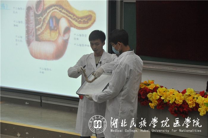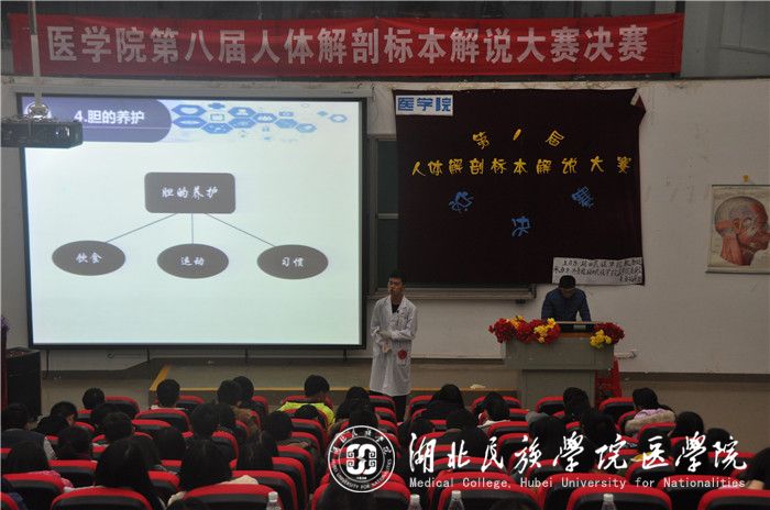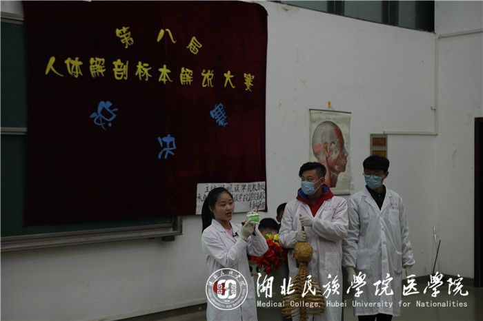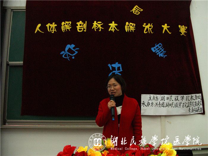 本网讯(记者 何雅婷 通讯员 向琴/文 刘彤 肖智仁 周蕾/摄)为进一步展现我院专业特色,弘扬医学风采,12月8日晚,由36365官网教务处主办、我院团委承办的第八届人体解剖标本解说大赛决赛在修远楼5B509教室举行,我院解剖教研室主任陈龙菊,解剖教研室老师吴太鼎、谭文波、王振富等出席并担任评委,我院党委副书记张蕊、团委书记彭弥作为嘉宾出席本次决赛,16级二百余名同学观看本次比赛。