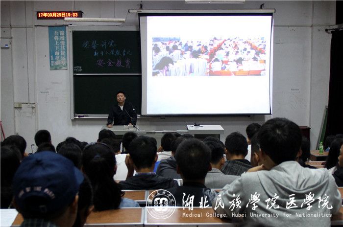 本网讯(记者 王蓉/文 熊慧雯/摄)9月29日,我院安全教育讲座在8305、8207、8205教室成功开展,学生科科长向驰、学生科老师周家頔、张鼎应邀担任主讲人,我院2017级新生参加本次讲座,此次讲座重点在于开展校园安全教育。