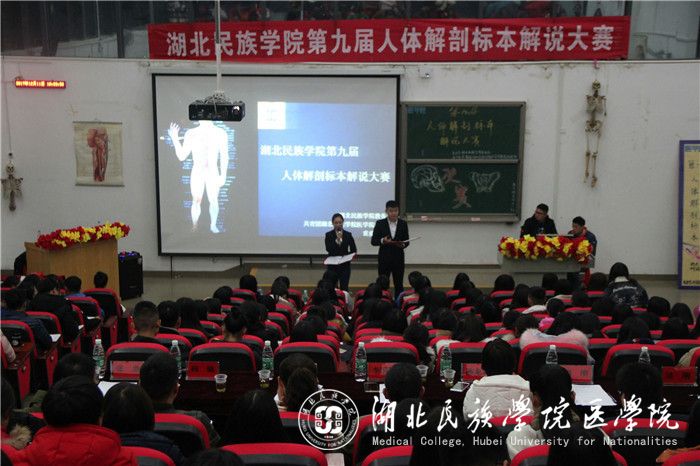 本网讯(通讯员 李明辉 苗佩佩 卢天琳/文 杨漫丽/摄)为弘扬医学风采,进一步展现我院特色,12月11日,由36365官网教务处主办、我院团委承办的第九届人体解剖标本解说大赛决赛于修远楼5B509教室举行。我院解剖教研室老师李国贵、陈龙菊、谭文波、吴刚、谭刚担任评委,我院党委副书记张蕊、学生科科长向驰及团委书记张鼎应邀出席。