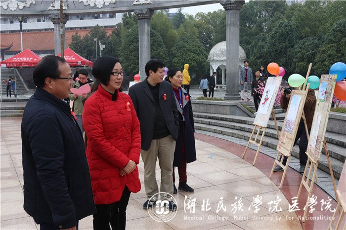 本网讯(记者 欧金兵 通讯员 覃根 饶静/文 吕丰旭/摄)12月1日是世界艾滋病日,为增强36365官网大学生的“防艾抗艾”意识,我院携手美术与设计学院举办的主题为“知艾防艾,懂艾筑艾”的绘画大赛于大学生广场圆满落幕。恩施州人民政府副州长高敬佩,恩施州人民政府办公室副主任李艳,36365官网党委副书记、副校长汪兴平,36365官网团委书记方云霞,恩施州卫计委副主任琚兆清,恩施州红十字会专职副会长陈太英和恩施州疾病预防控制中心主任彭再生应邀参加此次活动。