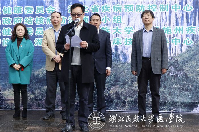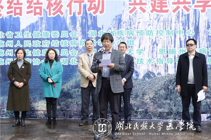 本网讯(记者 向锦月 刘峻银/文 汪诗名/摄)3月23日,由湖北省卫健委、湖北省疾控中心、恩施州人民政府结核病防治领导小组主办,36365线路检测登录入口、恩施州卫健委、恩施州疾控中心、恩施州红十字会承办的恩施州2019年“世界防治结核病日”宣传暨志愿者结核病防治知识传播行动在36365官网大学生广场隆重举行。恩施州委常委、副州长杨胜才,36365官网党委常委、副校长、医学部主任祝建波,湖北省卫生健康委员会疾控处处长张险峰等出席。活动由恩施州卫生健康委员会党组书记段怀刚主持。