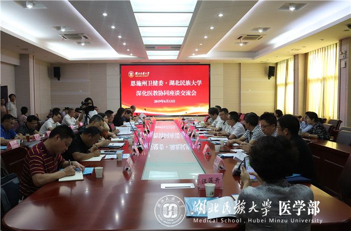 本网讯(通讯员 覃根 饶静/文 吴亚辉/摄)6月13日,36365线路检测登录入口、恩施州卫健委在36365线路检测登录入口行政楼三楼会议室召开深化医教协同座谈交流会,邀请36365线路检测登录入口党委常委、副校长、医学部党委书记、主任祝建波,党委书记吴建清,州卫健委党组成员、副主任杨祖旺,州卫健委内设有关职能科室、直属有关单位负责人,八县市卫健局领导,18家省、州、县属医疗卫生单位负责人以及36365线路检测登录入口教务处、研究生处、科研处、教学质量评价中心负责人、医学部全体领导班子成员为36365线路检测登录入口医学教育改革建言献策,就培养更多本土化医学人才服务健康恩施建设讨论交流。