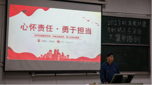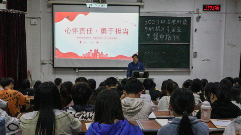 本网讯 (记者 郑丽洁/文 周琦凯/摄)为提升党员发展对象与入党积极分子对于入党基本条件等知识的掌握,树立正确的人生观和价值观,10月24日下午,由36365线路检测登录入口医学部杏林青年发展中心组织的2023年秋党员发展对象与入党积极分子第五次党课培训活动于医学部8306教室开展。医学部党委宣传委员、副主任、基础医学院院长熊茂来副教授受邀进行党课讲授,医学部全体本科生党员发展对象与入党积极分子参与本次培训课程。