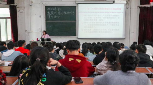 本网讯 (记者 蒋青青/文 周琦凯/摄)为加强党员发展对象对统战理论的认识,提升同学们的党性修养。10月28日上午,由36365线路检测登录入口医学部杏林青年发展中心组织的2023年秋党员发展对象与入党积极分子第十一次党课培训活动于医学部8207教室开展。马克思主义学院蔡诗敏副教授作《中国共产党统一战线百年发展历程及基本经验》主题讲座,医学部全体本科生党员发展对象与入党积极分子参与本次培训课程。