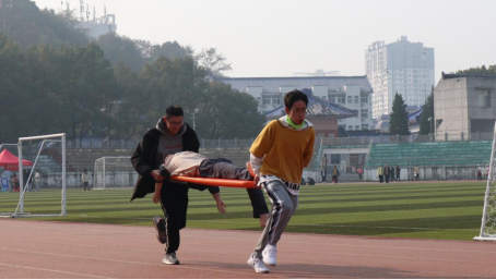 本次比赛由青马学员自行组队,每组10个人,男女均匀分配,每两组进行PK,参赛选手共13组。比赛开始,选手依次通过民族体育场到西苑餐厅的第一棒、西苑餐厅到北苑餐厅的第二棒和第三棒、北苑餐厅到西苑餐厅的第四棒与第五棒以及从西苑餐厅到民族体育场的第六棒。其中,第一棒的重物为担架和假人,第二棒和第三棒的重物为医疗箱,第四棒与第五棒的重物为担架,最后一棒的重物则为假人与担架。在此次比赛中学员们燃烧“卡路里”、亮出“精气神”、赛出“实干劲”。在经过激烈的比拼后,第11组夺得冠军,第12组夺得亚军,第10组夺得季军。