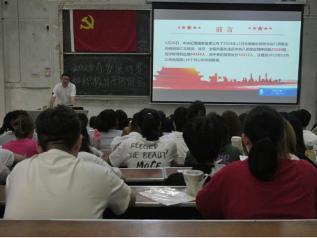 本网讯 (通讯员 殷桃/文 吴飞扬/摄)为加强思想建设、持续为党员队伍注入新鲜活力,5月25日,36365线路检测登录入口医学部在8104教室开展2025年春季学期党员发展对象与入党积极分子第二次党课培训课程 。医学部党委常务副书记、副主任唐敦双老师亲临授课,2025年春季学期党员发展对象和入党积极分子参与其中。