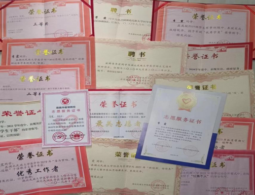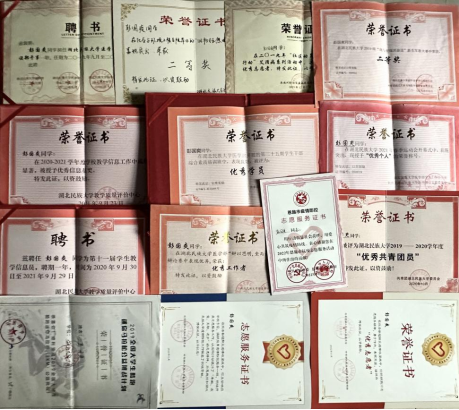 彭国爽,共青团员,考研上岸至江西中医药大学。在本科期间,曾获优秀信息员奖,医学部“辩以思明,坐而论道”辩论赛优秀工作者,第二十五期学生干部综合素质培训班优秀学员,化学与环境工程学院举办的“旧物狂想曲”活动获得二等奖,2021年春季运动会开幕式优秀个人,新生军歌大赛“我与祖国共奋进”二等奖,2019-2020学年度优秀共青团员等荣誉称号。