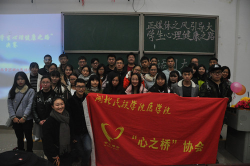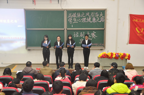 本网讯(通讯员 姚涛 向琴/文 肖智仁/图)12月9日晚,由我院“心之桥”协会举办的第七届“正媒体之风引导大学生心理健康之路”话剧小品大赛决赛在5B509圆满落幕,经过初赛、复赛的激烈比拼,共有10支队伍进入决赛。本次决赛有幸邀请李诗祥、邓向前、曹梦瑶等6名同学担任主评委并由“法苑学社”、“羽毛球协会”、“茶文化协会”等22个社团和协会担任大众评审。来自各二级学院的百余名学生观看了大赛。最终杨聪聪剧组以话剧《电击治疗中心》夺得桂冠。