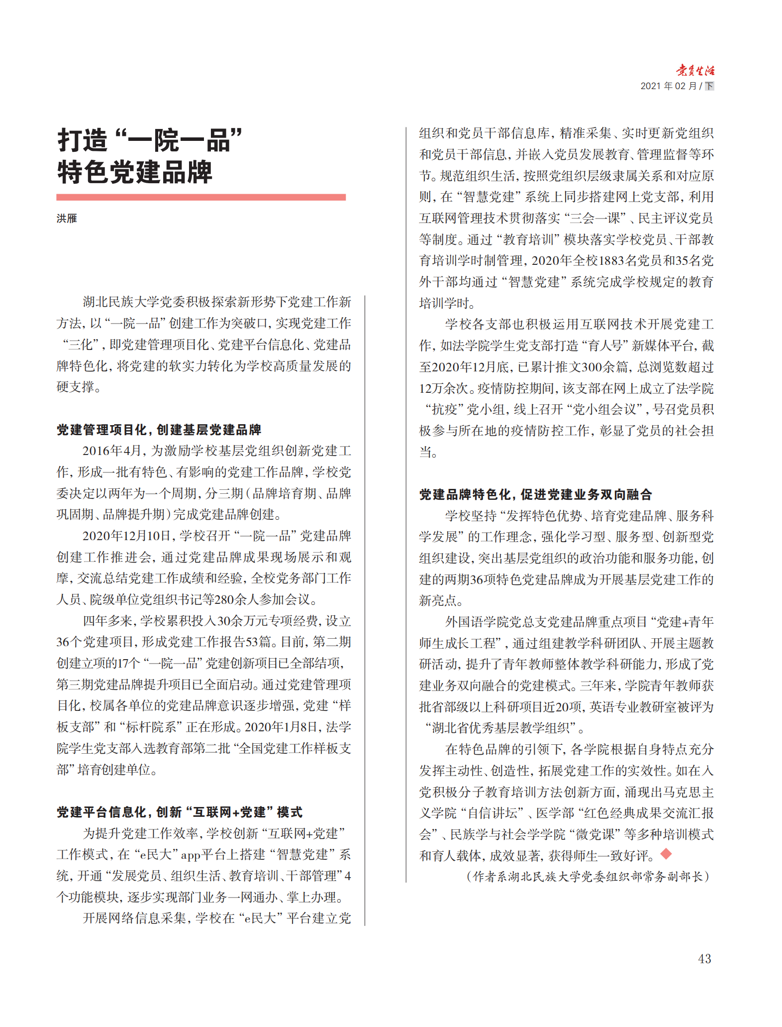《党员生活》专题报道36365官网“一院一品”党建品牌建设情况
