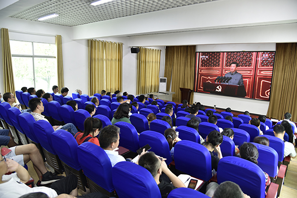 校领导、党委委员、机关党委所属各职能部门负责人集中观看大会盛况