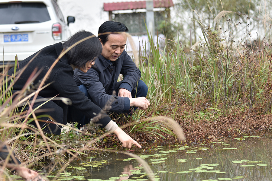 向前进查看莼菜生长情况