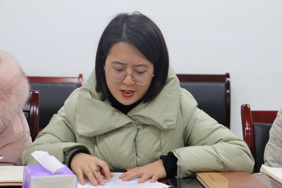民社学院学科建设科副科长赵慧翔分享了学习心得,认为“两个确立”反映了全党全军全国各族人民共同心愿,也是接下来在工作中要实化为行动的指南,自己要用工匠精神重新定义和塑造管理工作的内涵,实现管理向服务的转变。