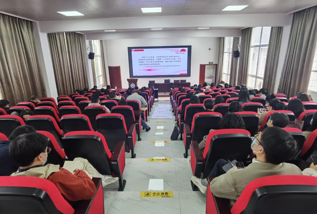 11月17日,外国语学院组织全院教职工在学院学术报告厅开展党的二十大精神专题学习,重点学习了《高举中国特色社会主义伟大旗帜 为全面建设社会主义现代化国家而团结奋斗——在中国共产党第二十次全国代表大会上的报告》《习近平在二十届中共中央政治局常委同中外记者见面时强调 始终坚持一切为了人民一切依靠人民 以中国式现代化全面推进中华民族伟大复兴》等内容,并集中观看国家教育咨询委员会秘书长张力作的题为《实施科教兴国战略,强化现代化建设人才支撑》的辅导报告。党总支书记严森表示,学院把学习宣传贯彻党的二十大精神作为当前和今后一个时期的首要政治任务,要求全体教职员工自觉做学习、宣传、贯彻党的二十大精神的先行者,对照原文学,结合工作学,通过集中学习、分组学习和自主学习等多种学习形式,把全体教职员工的思想统一到党的二十大擘画的蓝图和指引的方向上来。