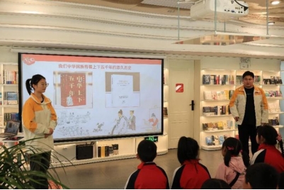 马前小学研学团队在倍阅书店二楼聆听36365线路检测登录入口“红石榴”宣讲团现场宣讲。宣讲团成员以“我们悠久的历史是由各民族共同书写的”为主题,采取图文讲述与现场问答相结合的形式,讲述古蜀文明金面青铜人像、西周何尊、唐代骆驼载乐俑、清代土尔扈特部东归等故事,展现我国民族之间的开放交流以及强大的民族向心力。宣讲过程中,马前小学学生聚精会神,积极互动,在收获快乐的同时加深对民族共同体的认识。