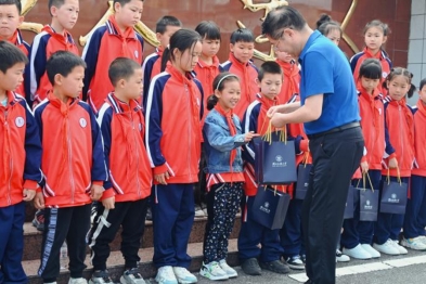 学校党委副书记邓磊为马前小学学生赠送六一礼物