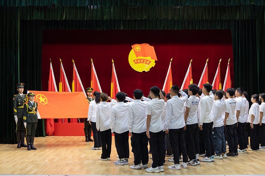 新团员在团旗前宣誓